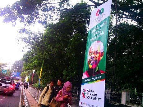 Spanduk Bergambar Soekarno dan Nelson Mandela Bertebaran di Bandung